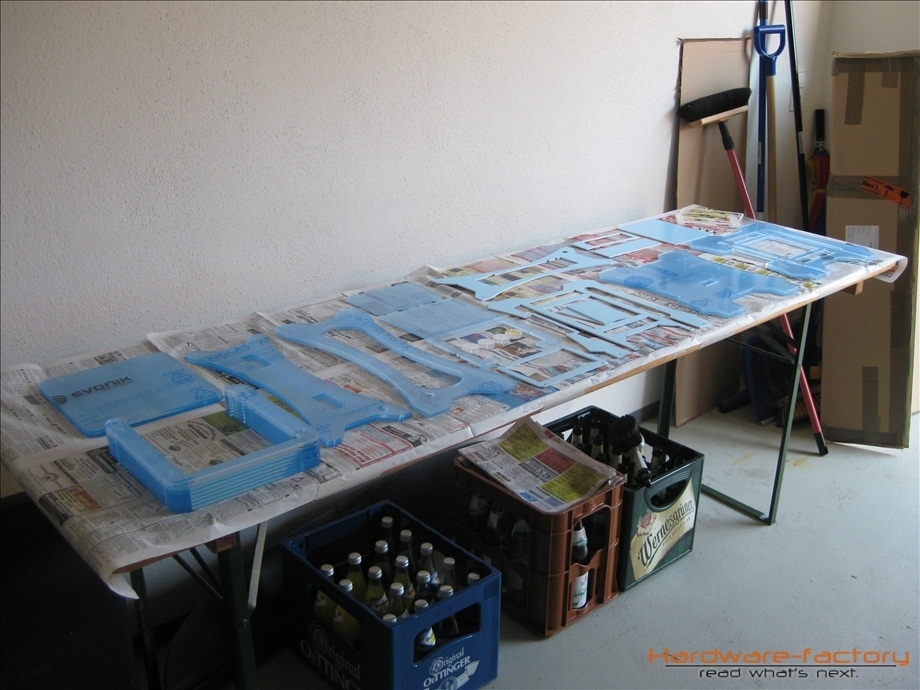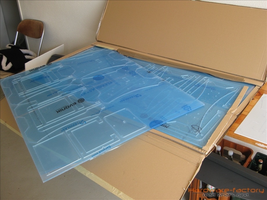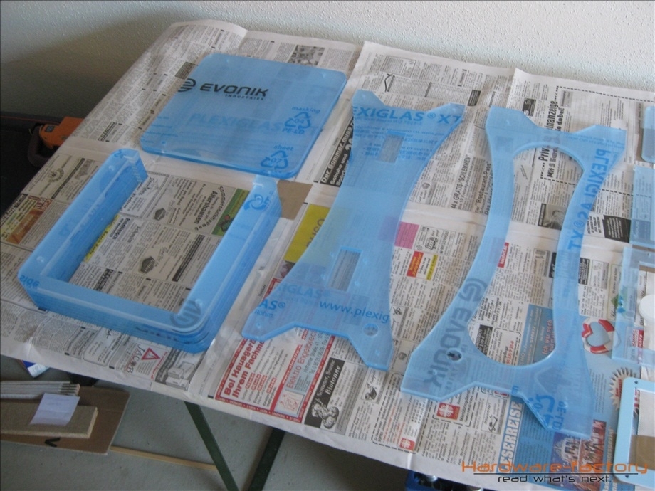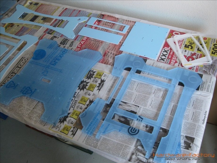 Am Donnerstag, den 25.11.2011 plante ich eigentlich das nächste Update zu schreiben, da klingelte das Telefon und die Stimme auf der anderen Seite teilte mir mit, dass mein Plexiglas zum Abholen bereit wäre. Na endlich! Ich ließ alles stehen und liegen, schwang mich ins Auto und drei Stunden später war ich samt gelasertem Plexiglas wieder in der Garage. Zuerst einmal alles auspacken.