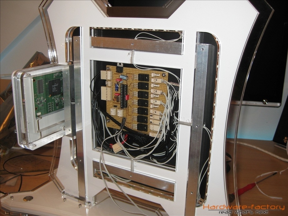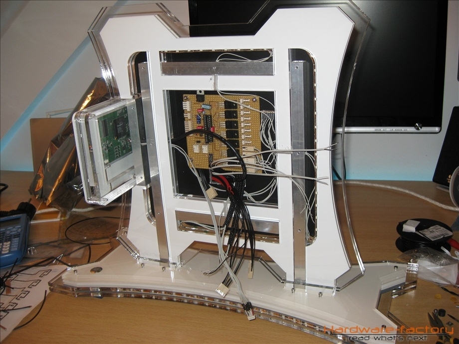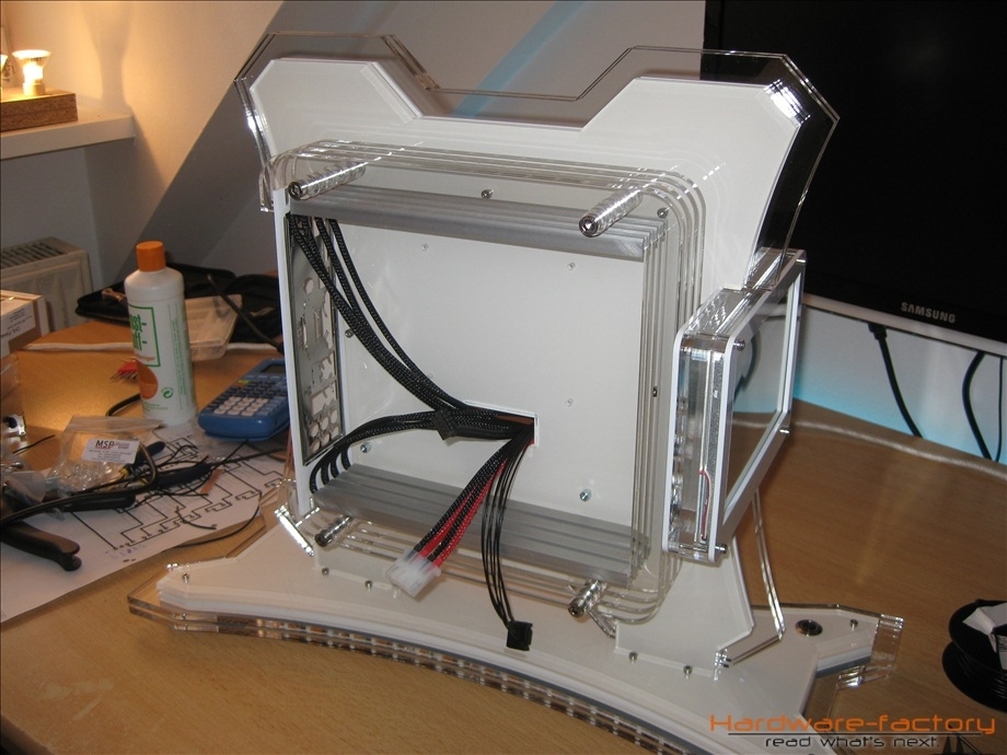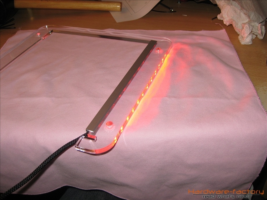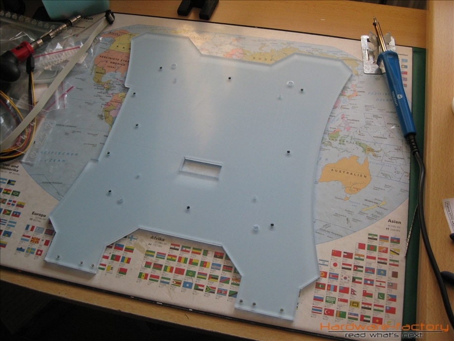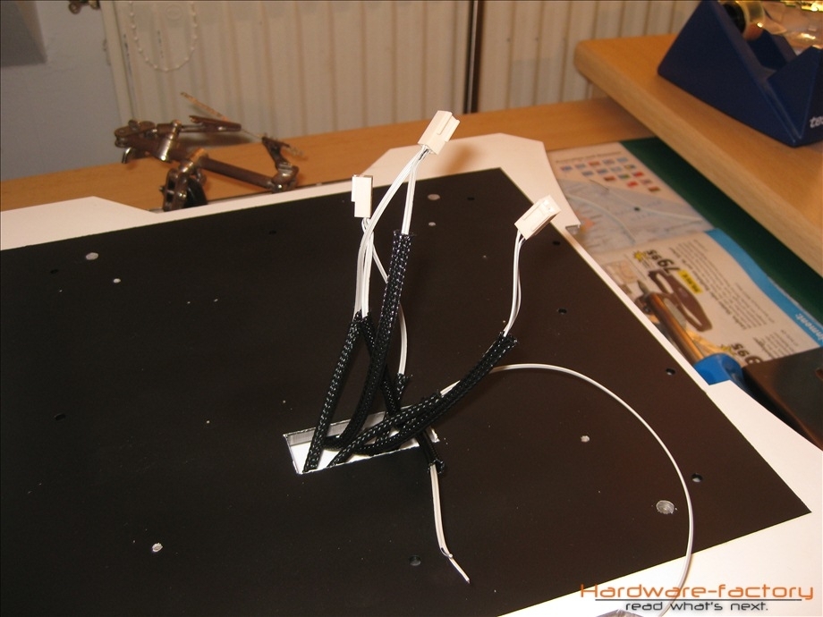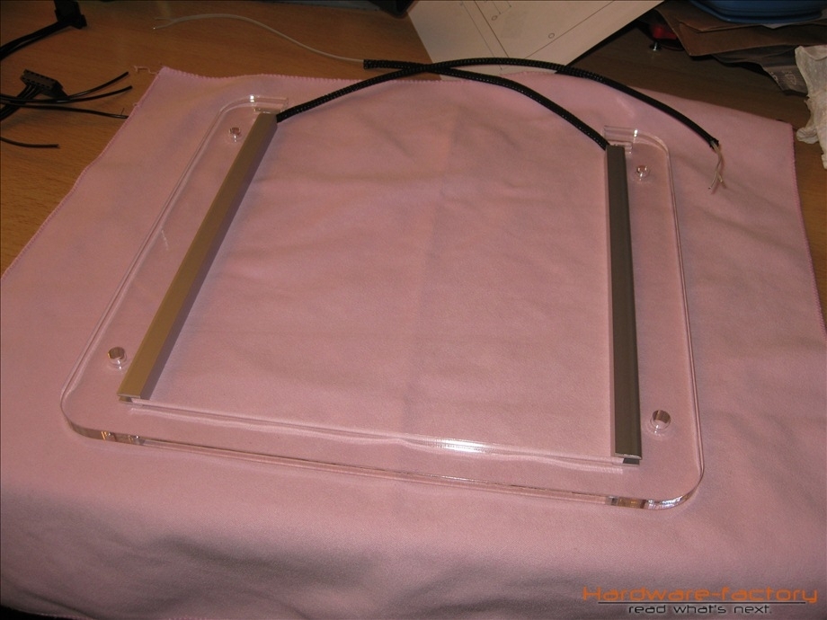 Kommen wir nun zum Mainboard- und HDD-Käfig. Bestehend aus einzelnen Plexiglasplatten und Abstandshaltern werden diese später im Sandwich-Verfahren aufgebaut. Zuerst müssen alle einzelnen Plexiglasplatten mit den zuvor angefertigten Led-Leisten ausgestattet werden.