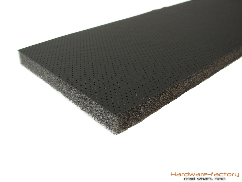 Die Dämmmatten mit einer Dicke von 12 mm setzen sich aus drei Schichten zusammen, von denen der anthrazitfarbene Akkustikschaumstoff den Löwenanteil ausmacht. Die Rückseite der Dämmmatten bestehen wie im vorliegenden Fall aus einer Selbstklebeausrüstung. Möglich sind jedoch auch ein klettfähiges Schlingengewirke oder eine Bitumenschwerfolie. Die Vorderseite besteht aus feingelochtem Kunstleder mit einem Lochdurchmesser von unter einem Millimeter. Desweiteren zeichnen sich die Dämmmatten durch eine Schmutzunempfindlichkeit und der Möglichkeit einer abwaschbaren Reinigung aus. Für Käufer der ungedämmten Version des anidées AI-6, die ihr Gehäuse nachträglich und ohne großes Zuschneiden mit einer Dämmung ausstatten wollen, bietet Caseking das passende King Mod Premium Dämmset zum Nachrüsten für einen Preis von 29,99 € zzgl. Versandkosten im hauseigenen Webshop an.