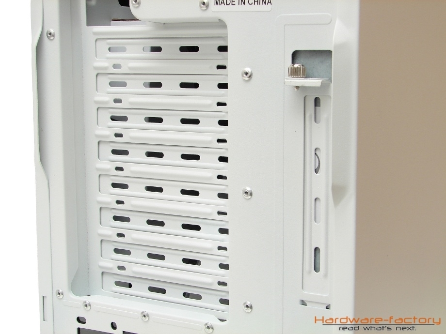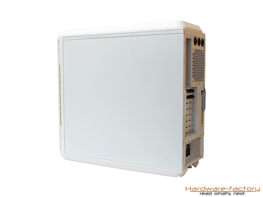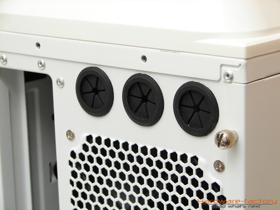 Der Blick auf die Rückseite des Gehäuses offenbart auf den ersten Blick nichts Neues und zeigt den bereits bekannten Aufbau. Das AI-6 folgt demnach dem aktuellen Trend und ermöglicht eine Montage des Netzteils auf dem Boden. Durch diese Platzierung verfügt das Netzteil über einen eigenen, vom restlichen System getrennten Luftstrom. Für das Gesamtsystem bedeutet dies jedoch, dass eine mögliche Quelle der Wärmeabführ entfällt – beim AI-6 sorgen jedoch bis zu zwei 140-mm- bzw. 120 mm-Lüfter im Heck des Gehäuses für adäquaten Ersatz. Bedingt durch die am Boden befindliche Montage entsteht zusätzlich die Gefahr, dass sich das Netzteil mit der Zeit durch Staubablagerungen zusetzt, erhitzt und dann über kurz oder lang den Betrieb mit einem letzten Knall einstellt. Staubfilter sind an dieser Stelle Pflicht, aber dazu später mehr. Bis zu acht Single-Slot-Karten können vom anidées AI-6 aufgenommen werden, ein bereits vorinstallierter 120mm großer Gehäuselüfter sorgt für die entsprechende Luftzirkulation. Um den Einbau einer Flüssigkeitskühlung zu erleichtern und die Gestaltungsmöglichkeiten zu maximieren, wurden im oberen Bereich der Rückseite vom Hersteller drei nebeneinanderliegende gummierte Schlauchdurchführungen platziert. Pfiffig und die eigentliche Besonderheit der Rückseite ist die vertikal neben den PCI-Slots angebrachte Slotblende. Mittels dieser können IO-Brackets, wie sie dem Zubehörpaket eines Mainboards beiliegen oder kleinere Lüftersteuerungen, oft zu finden in Zubehörpaketen von Gehäuselüftern, aufgenommen werden, ohne dass ein regulärer PCI-Slot verloren geht.