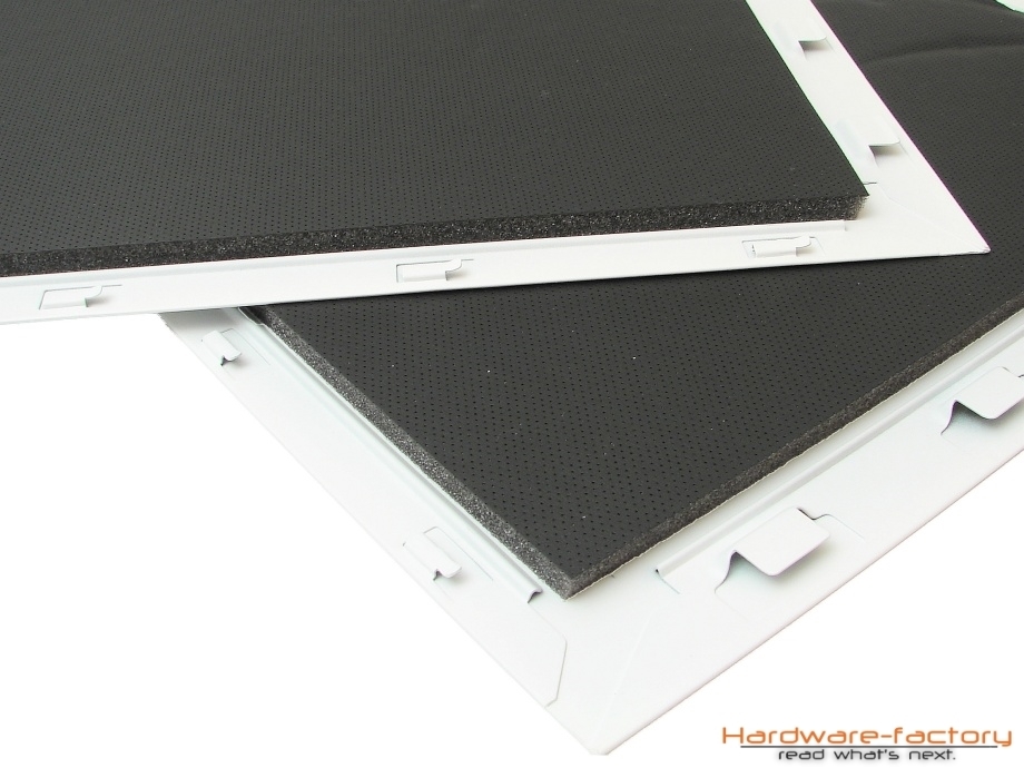 Aufgrund der uns vorliegenden King Mod Edition sind die Seitenteile bereits mit Dämmmatten präparieret. Dennoch sind diese alles andere als Instabil, was auf das hochwertige und ausreichend dicke Material der Seitentüren zurückzuführen ist. Zusätzlich sind Dämmmatten oberhalb der Befestigungsschiene der Erweiterungskarten und im Deckelbbereich geklemmt worden, die je nach Wunsch des Anwenders problemlos herausgenommen werden können.