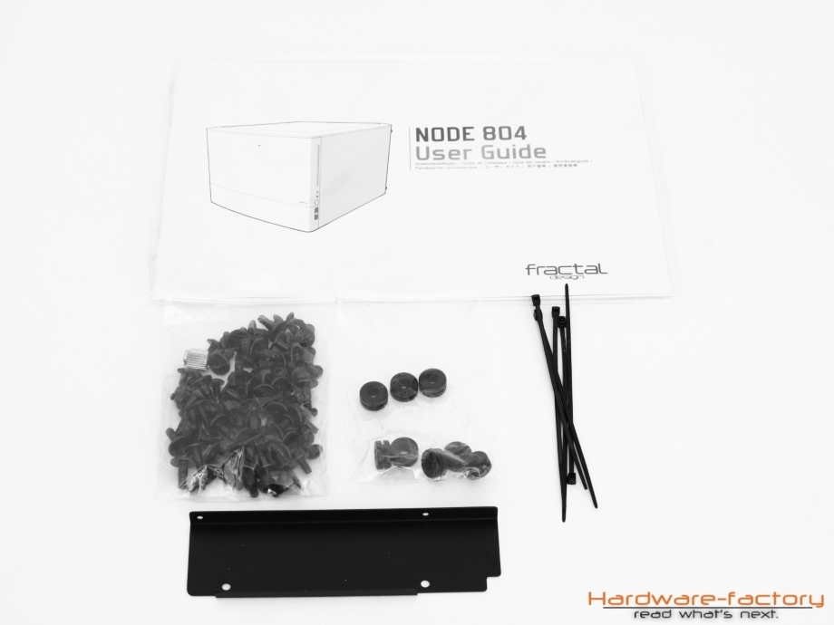 Etwas mager erscheint der Lieferumfang, der dem Node 804 beiliegt. Neben der obligatorischen Schraubenansammlung erhält der Kunde noch ein paar Kabelbinder, Entkoppler, einen Adapter für das optische Laufwerk sowie ein Handbuch, welches durch seine detailreichen Maßangaben zu allen Lüfter- bzw. Radiatorplätzen auffällt. Sämtliche Staubfilter, Festplattenrahmen oder die ebenfalls dazugehörige Lüftersteuerung sind bereits eingebaut und warten darauf, vom Kunden in Betrieb genommen zu werden. Positiv anzumerken ist hier die Anzahl mitgelieferter Lüfter, die mit drei Exemplaren höher ausfällt, als bei vielen anderen Gehäusen. Auf der folgenden Seite sehen wir uns das Gehäuse aber erst mal von außen an, denn auch da hat der in Schweden beheimatete Gehäusespezialist die eine oder andere Überraschung parat.