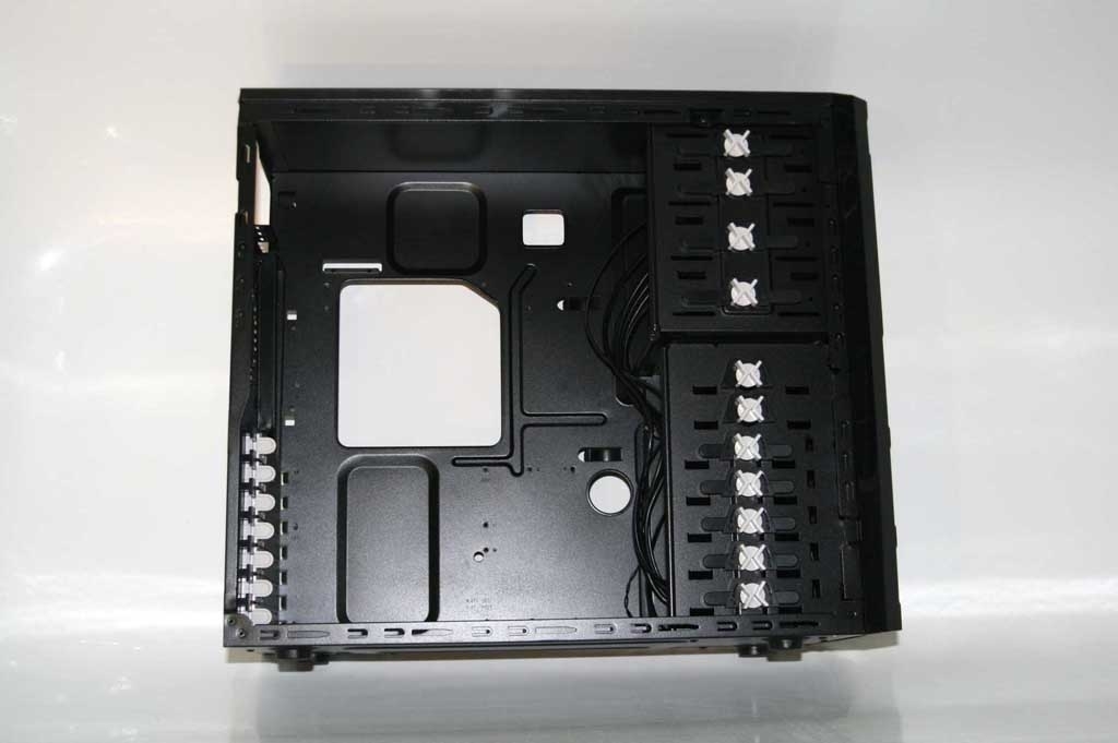 Zu scharfen Kanten und der Qualität des Materials lässt sich jedoch bereits ein erster Eindruck festhalten: Scharfe Kanten gibt es definitiv keine, besonders hierfür anfällige Punkte (wie Falze am Laufwerkskäfig) wurden sogar mit Kunststoffkappen eigens abgedeckt.