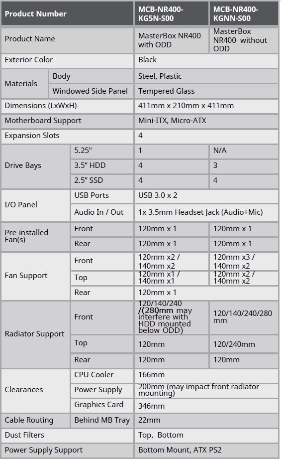 Die thermische Leistung steht im Mittelpunkt der NR-Serie und wird auf die vielseitige Funktionalität angewendet. Die großzügige Unterstützung diverser Radiaorgrößen und die uneingeschränkte Belüftung an Ober- und Frontplatte sorgen dafür, dass auch anspruchsvollste Komponenten effizient gekühlt werden. Die NR-Serie stellt das Stereotyp der minimalen Gehäuse in Frage, indem sie mutige Leistung in ein klares und einfaches Design bringt. Der von Cooler Master angegebene Preis liegt bei 59€ für das NR400 sowie 69€ für das NR600.