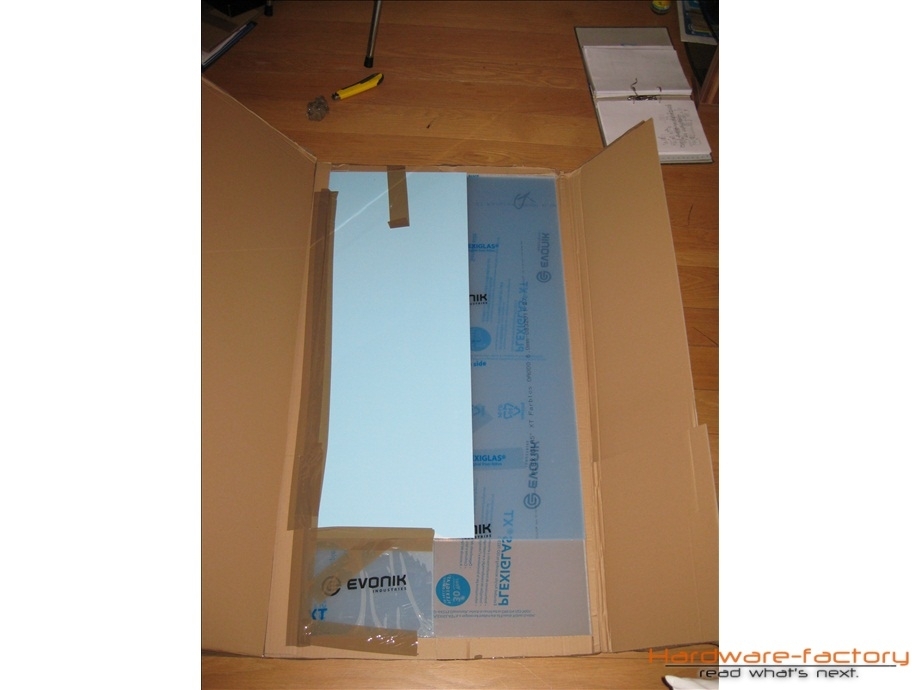 Mit dem Rohmaterial fängt es an. Insgesamt 4 Plexiglasplatten: