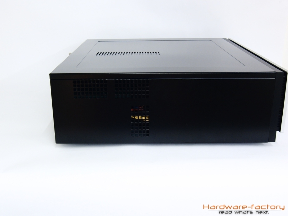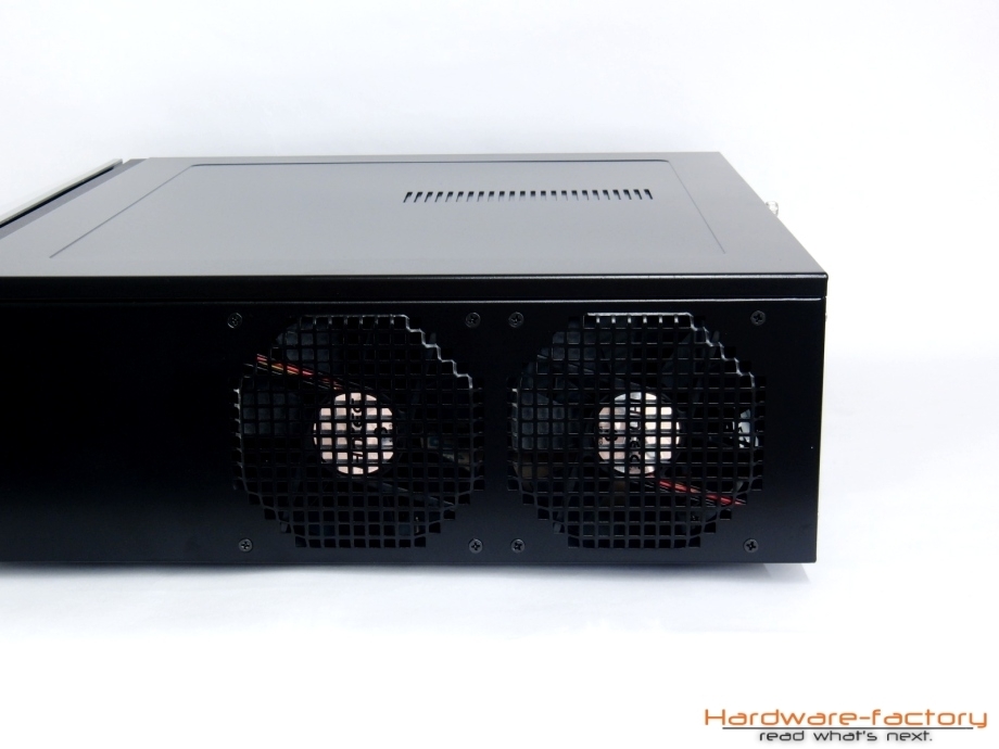 An der rechten Seite sieht man zwei leicht abstehende Lüfterschutzgitter. Dadurch ermöglicht es Antec, dass der notwendige Luftstrom von den Lüftern aufrecht erhalten werden kann, sollten die Lüfter von außen mit Gegenständen verstellt und abgedeckt werden.