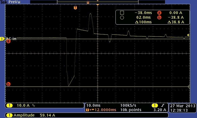 Ein zu hoher Einschaltstrom (inrush current) kann mit dem berüchtigten „Herausfliegen“ der Sicherung im heimischen Sicherungskasten quittiert werden. In der Regel sollte dieses Problem nicht auftreten, da der Zeitraum, innerhalb dessen der Einschaltstrom durch das Netzteil gezogen wird, um die Primärkondensatoren aufzuladen, ganz einfach zu kurz ist, um die Sicherung auszulösen.