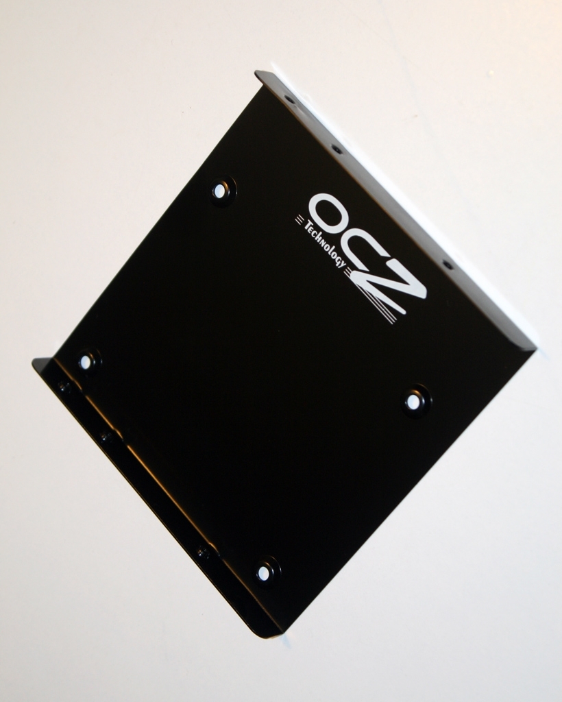 Die Verpackung der kleinen 2,5"-SSD ist schmal und dezent gehalten. Beim Öffnen der Verpackung kommt ein edel wirkendes Etui zum Vorschein, bei dessen Aufklappen man als erstes die äußerst nützliche Zugabe sieht, die OCZ dieser SSD beilegt: Ein im OCZ-Design gehaltener 3,5"-Einbaurahmen zur Montage der SSD in Desktop-Systemen. Diese sind notwendig, da die SSD ansonsten mit 2,5" zu schmal für einen normalen HDD-Schacht ist. Zwar sind SSD's lageunabhängig und geben keine Vibrationen ab, jedoch findet man Gefallen daran, das Laufwerk ordentlich einbauen zu können.
