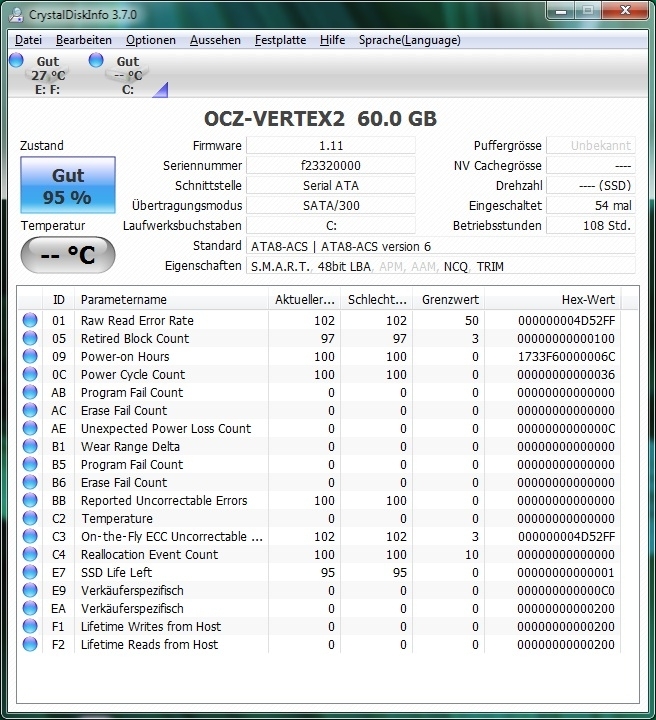 Inzwischen sind diese Kinderkrankheiten weitestgehend beseitigt, die allermeisten Controller beherrschen TRIM und führen nicht mehr zu deutlichem Einfrieren des Systems. Sie unterscheiden sich aber dennoch stark in der Performance, insbesondere wenn es um zufällige Zugriffe auf kleine Dateien geht, wie es bei Systemplatten häufig der Fall ist, oder darum, eine Funktion der SATA-Schnittstelle - das sogenannte Native Command Queue (NCQ) - bestmöglich umzusetzen. Mit einem Programm wie Crystal Disk Info kann man das Featureset leicht überprüfen. Bei der OCZ ist TRIM und NCQ aktiviert:
